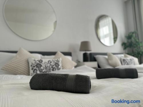 The sofa bed, which converts into a bed, has a size of 130 x 200 cm, making it suitable for one adult or two children to sleep on. You will check in independently using a key safe.